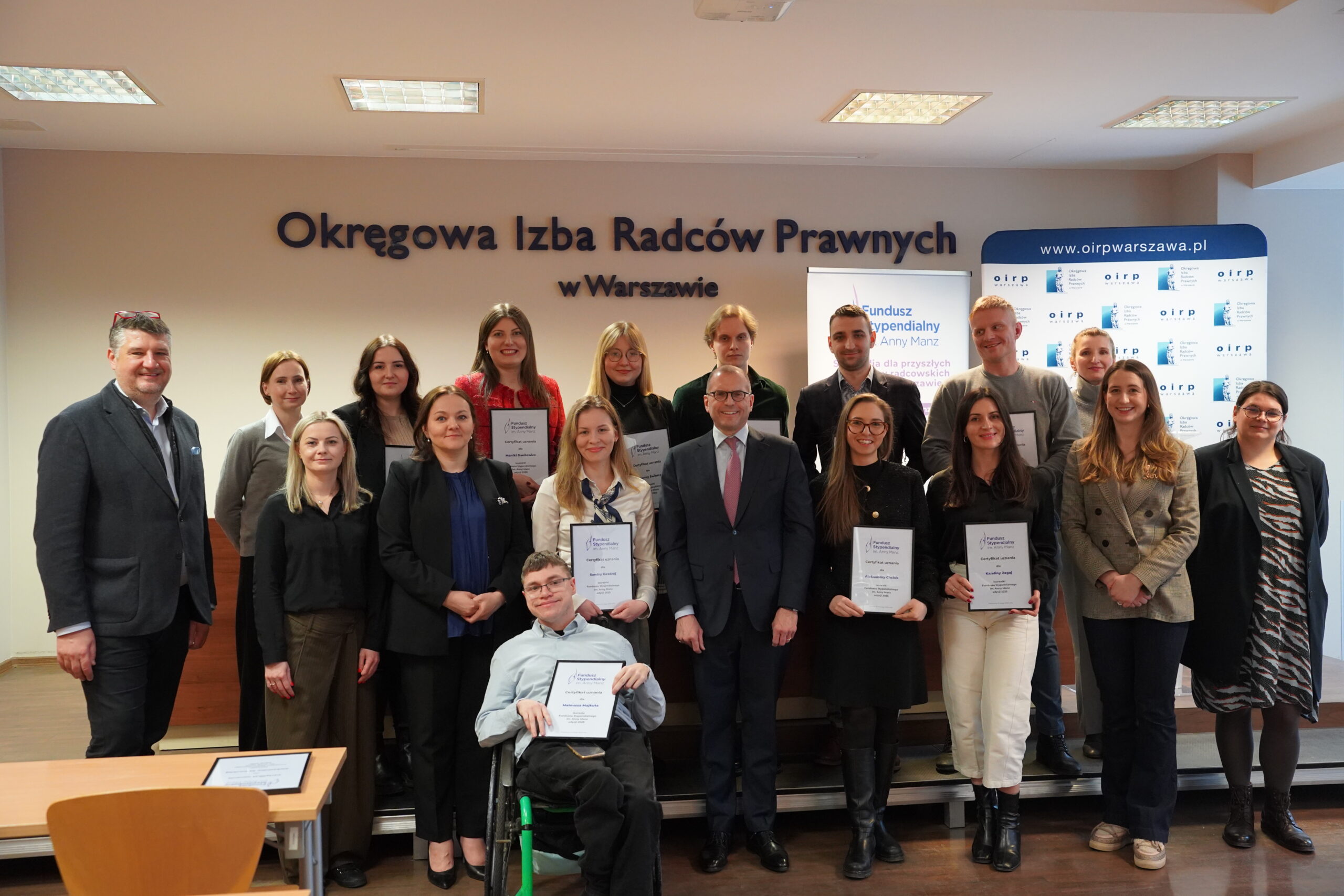 14 lutego 2025 r. w siedzibie Okręgowej Izby Radców Prawnych (OIRP) w Warszawie odbyło się spotkanie powitalne z pierwszymi laureatami i laureatkami Funduszu Stypendialnego im. Anny Manz. Z wielką przyjemnością i dumą spotkaliśmy się z siedmioma stypendystami i stypendystkami.